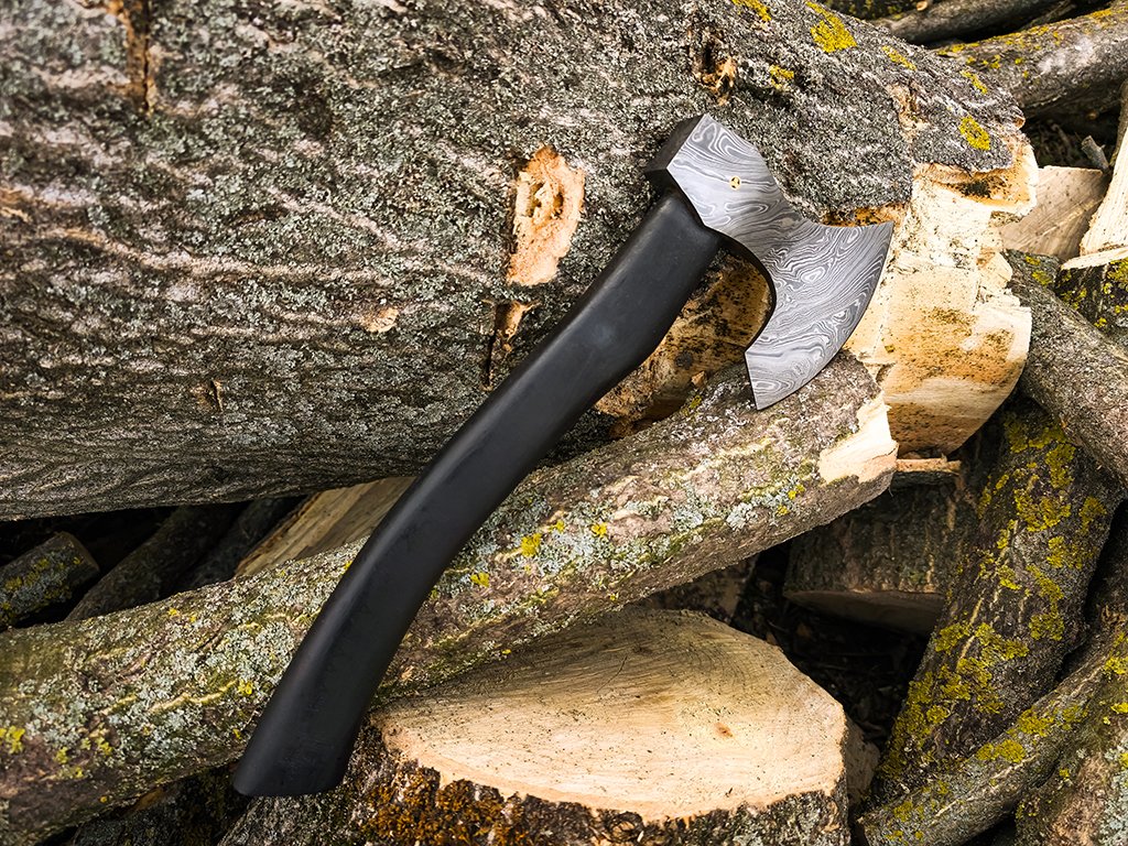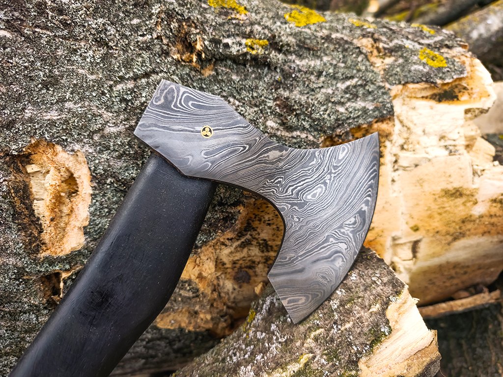 Exklusive Dellinger-Axt aus hochwertigem Damaststahl für einfachere Aufgaben in der Natur. Sie können die Axt bei Ausflügen im Wald, beim Sammeln kleinerer Holzstücke oder bei der Bearbeitung kleinerer Baumstämme einsetzen. Zu guter Letzt können Sie die Dellinger-Axt auf einem Regal oder in einer Vitrine mit Ihren Lieblings-Arbeitsgeräten präsentieren. Die Wikingeraxt besteht aus zwei Schichten der Stähle 1095 und 15N20, die von Hand miteinander verflochten sind. Damaststahl basiert auf zwei Metallarten, von denen eines einen hohen Kohlenstoffgehalt und das andere einen niedrigen Kohlenstoffgehalt aufweist. Der hohe Kohlenstoffgehalt verleiht der Axt eine extreme Schärfe und das Schärfen dieses Materials ist viel einfacher als mit Werkzeugen aus rostfreiem Stahl. Diese Axt besteht aus natürlichen Materialien.