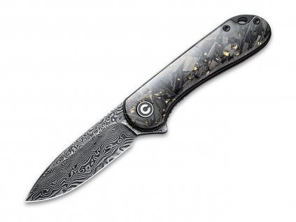 Civivi Cetos C21025B-DS1 Klappmesser aus Damaststahl und Kohlefasergriff. Die Länge der Klinge beträgt 8,9 cm.