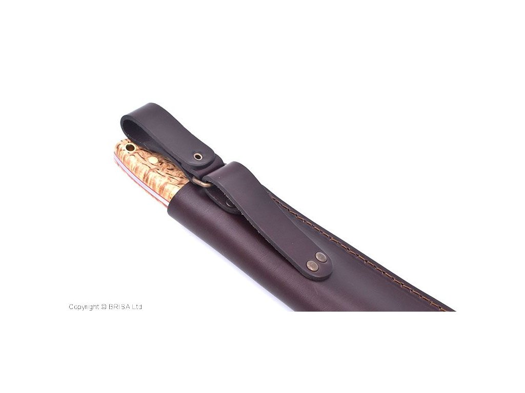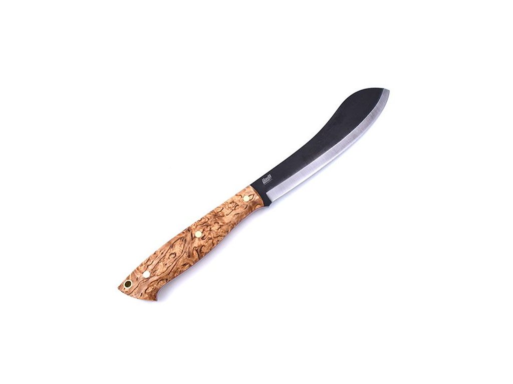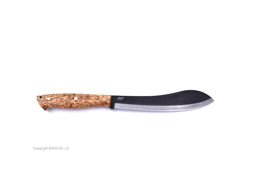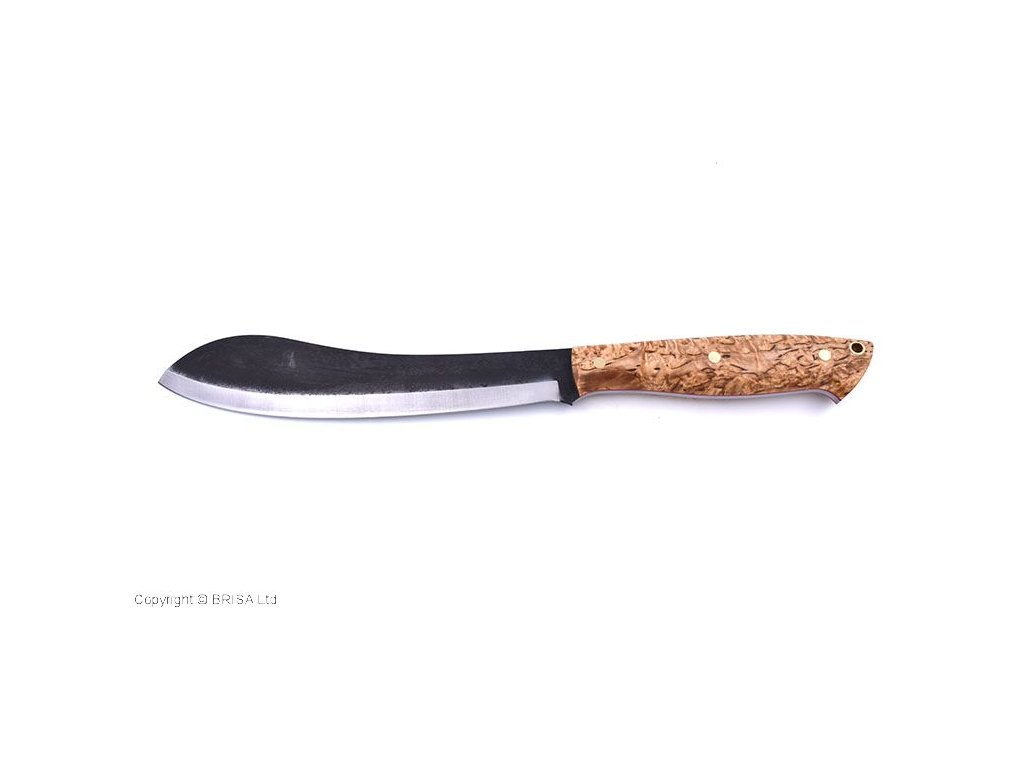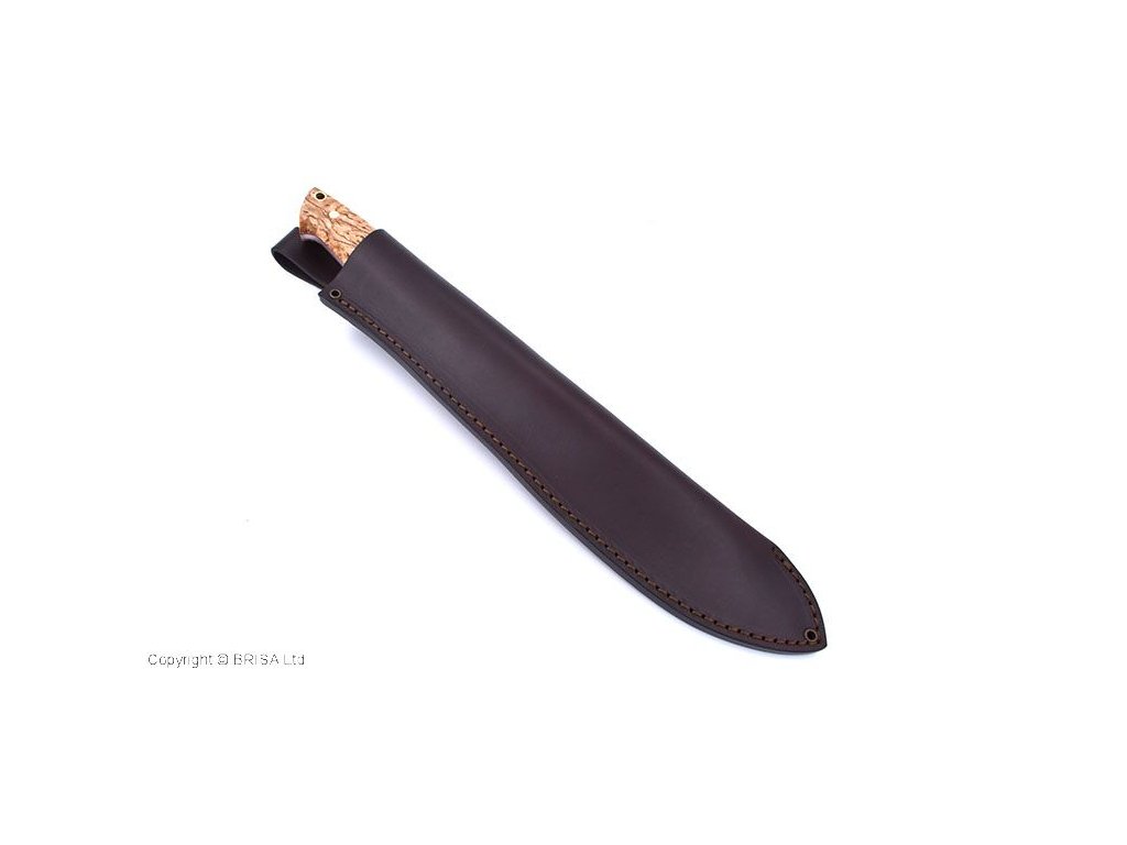 Ein großes Messer (oder eine kleinere Machete), das für alle Aktionen gedacht ist, die mit dem Aufenthalt in der Natur verbunden sind, zum Beispiel Hacken oder Selbstverteidigung. Die Form sowohl der Klinge als auch des Griffs wurde für maximale Funktionalität in Situationen entwickelt, die in der Natur auftreten können. Das breitere Ende der Klinge soll beim Hacken helfen, und das schmalere Ende, die erste Hälfte der Klinge und der Griff an der Klinge, soll präzisere und kontrollierte Schnitte oder Schnitzarbeiten ermöglichen. Das Brisa Bigmuk-Messer hat eine 24 cm lange Klinge aus kohlenstoffreichem Federstahl 80CrV2, der bei der Herstellung finnischer Messer beliebt ist. Das Messer hat einen skandinavischen Schliff, der sich hervorragend zum einfachen Schärfen und bei der Bearbeitung von Holz eignet. Der Griff besteht aus Maserbirkenholz. Am Ende des Griffs befindet sich eine Öffnung zum Einfädeln der Kordel – Lanyard Hole. Das Messer wird mit einer Lederscheide geliefert.
