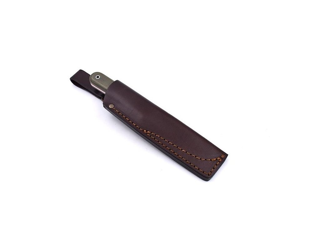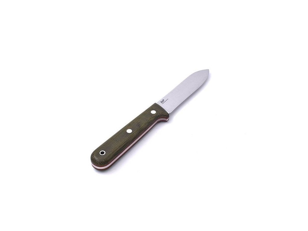Das Brisa Kephart 115 ist eine moderne Version des klassischen amerikanischen Bushcraftmessers, das Horace Kephart vor mehr als hundert Jahren entworfen hat. Das Messer ist schmaler und beweglicher, es funktioniert perfekt als Campingmesser, Outdoor-Küchenmesser und als Bushcraft-Messer. Die 11,5 cm lange Klinge aus 80CrV2-Kohlenstoffstahl hat eine flache Schneide. Der 80CrV2-Stahl zeichnet sich durch seine Zähigkeit aus, was ihn ideal für den Einsatz in der Natur macht. Angenehm ist der grüne Micarta-Griff angenehm anzufassen und feuchtigkeitsbeständig. Das Messer wird mit einer Lederscheide geliefert.