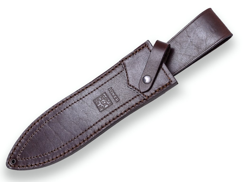 Joker Jabalí CO110 ist ein großes Jagdmesser, das für jeden Outdoor-Enthusiasten geeignet ist. Die Full-Tang-Klinge in Spear-Point-Form ist aus rostfreiem Stahl (X50CrMoV) 151.4116 gefertigt und hat eine Länge von 25 cm. Die Klinge ist beidseitig geschärft und mit einem Satin-Finish versehen. Der Griff des Messers besteht aus Olivenholz. Auch in einer Vitrine oder auf einem Regal macht das Messer eine gute Figur. Das Jagdmesser wird zusammen mit einer hochwertigen braunen Lederscheide geliefert. Das Messer wird komplett in Spanien hergestellt.