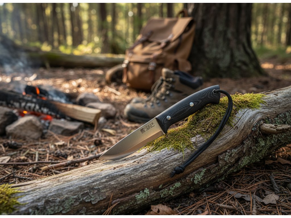 Das Joker Ranger CM143 ist ein mittelgroßes Bushcraft-Messer mit Full-Tang-Konstruktion, gefertigt aus einem einzigen Stück Stahl. Die 11 cm lange Klinge aus rostfreiem Sandvik 14C28N-Stahl verfügt über ein elegantes Satin-Finish. Dank seines skandinavischen Schliffs (Scandi-Grind) ist dieses Outdoormesser der ideale Begleiter für all Ihre Abenteuer in der Natur. Der Griff aus schwarzem Micarta liegt äußerst komfortabel in der Hand, was Sie besonders nach vielen Stunden in der Wildnis zu schätzen wissen werden. Im Lieferumfang sind eine schwarze Lederscheide sowie Paracord enthalten.