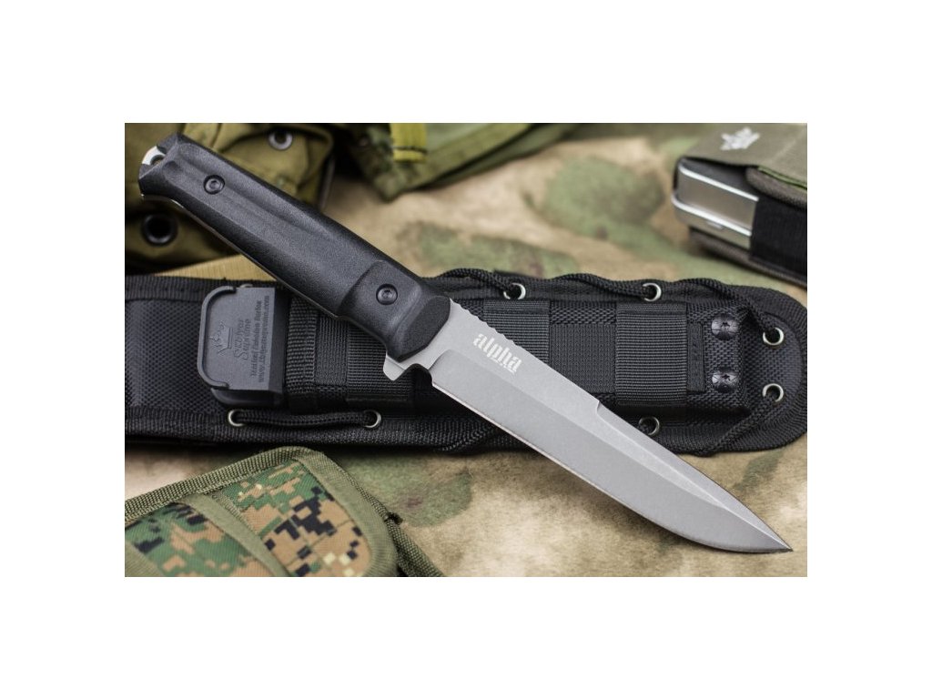 Ein modernes Modell eines Kampfmessers aus der Echelon-Serie. Full-Tang-Konstruktion, die seine Stärke und Zuverlässigkeit gewährleistet. Die Klinge besteht aus AUS-8-Stahl, Härte 57–59 HRC, mit einer falschen Kante an der Oberkante der Klinge und einer TacWash-Oberflächenbehandlung (graues Stonewash). Der Griff besteht aus zwei Schichten – die untere Schicht Hergestellt aus ABS-Kunststoff, der die Festigkeit des Griffs gewährleistet. Die obere Schicht des Griffs besteht aus Kraton, das sich angenehm anfühlt und gleichzeitig sehr langlebig ist. Das Messer wird mit einer Nylon-Kunststoffscheide geliefert, die mit dem Molle-System kompatibel ist.