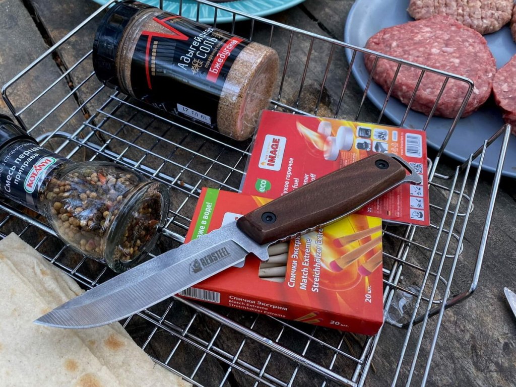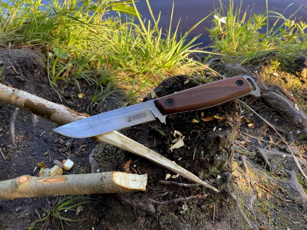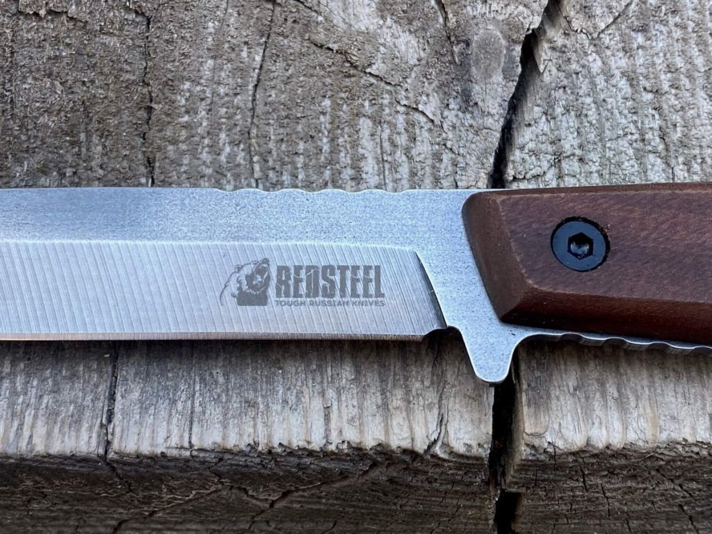 Griff aus kaukasischem Walnussholz. Ein einfacher Schutz schützt Ihre Finger vor dem Abrutschen auf der Klinge. Das Messer wird mit einer Scheide aus Leder geliefert. Das Kizlyar Supreme RedSteel General günstige Alternative für Kunden, die einfache, aber hochwertige Messer suchen. RedSteel-Messer werden im Werk Kizlyar Supreme hergestellt. Alle Klingen werden in Stickstoff gehärtet und anschließend mehrstufig angelassen. Der niedrige Preis der RedSteel-Messer ist auf den hohen Grad der Produktionsautomatisierung zurückzuführen, 95 % der Produktionsvorgänge werden auf CNC-Maschinen durchgeführt.