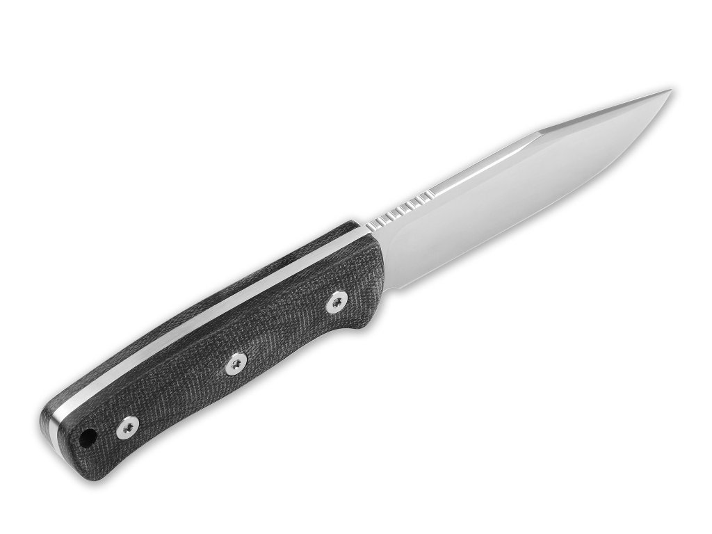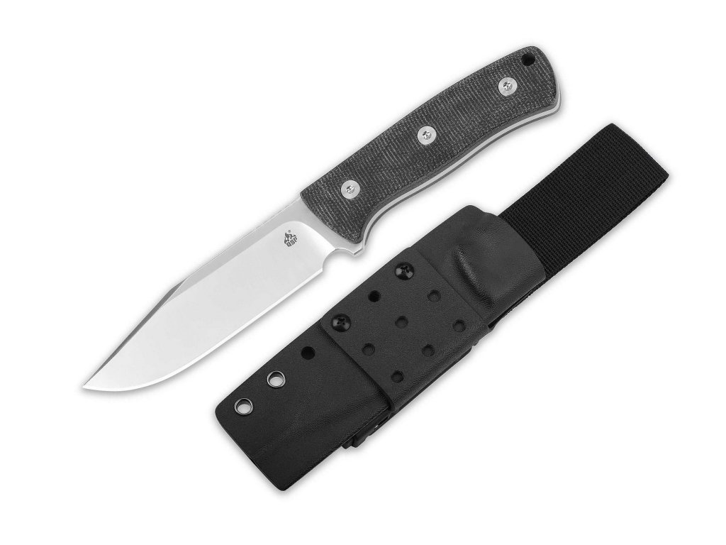 Das Messer mit feststehender Klinge QSP Bison ist ein zuverlässiges Messer aus hochwertigen Materialien. Die Klinge besteht aus Werkzeugstahl D2. Die 4 mm dicke Klinge hat eine Full-Tang-Konstruktion, ein Satin-Finish und einen Flachschliff. Der Griff besteht aus glattem Micarta mit einer feinen Textur, die beim Gebrauch angenehm zu halten ist. Das Messer wird mit einer Kydexscheide geliefert, die je nach Ihren Vorlieben und Bedürfnissen vertikal oder horizontal montiert werden kann.