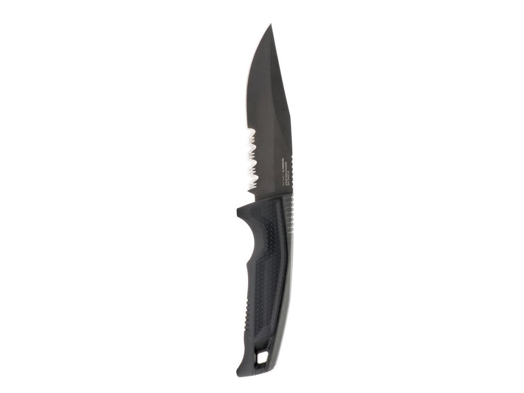 Das SOG Recondo FX Messer wurde nach den Anforderungen uniformierter, professioneller Anwender hergestellt. Dank der feststehenden Klinge und der Full-Tang-Konstruktion kann das Recondo als Überlebens-, Taktik- und Outdoormesser verwendet werden. Edelstahl, hergestellt in Japan, von der Aichi Steel Corporation. Qualitativ ist er mit Stählen vergleichbar 440C, bzw. 8Cr13MoV, und erreicht in der Regel eine Härte von 57-59 HRC. Die Klinge lässt sich sehr gut schärfen, hat einen flachen Schliff, eine Länge von 11,93 cm und eine Titannitrid-Oberfläche Behandlung. Teil der Klinge gezahnt (gekerbt) und zum Schneiden von Seilen geeignet ist. Der geformte, schwarz gummierte Griff sorgt für optimalen Halt unter allen Bedingungen. Das Messer wird mit einer schwarzen UMS-Kydexscheide (Universal Mount System) von SOG geliefert. Die Scheide bietet die Möglichkeit zu wählen, wie viel Kraft zum Ziehen aufgewendet werden muss, und verfügt über weitere Optionen, um es genau auf die Aktivität abzustimmen, für die Sie das Messer mitnehmen möchten.