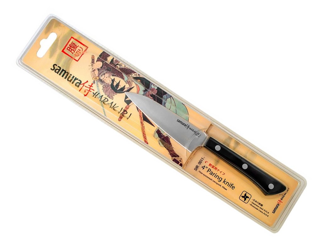 Samura-Küchenmesser aus der Harakiri-Serie kombinieren eine dünne Klinge aus japanischem Stahl und einen praktischen Griff aus ABS-Kunststoff. Sie sind leicht und bieten ein sehr gutes Verhältnis von Qualität, Design und Preis.