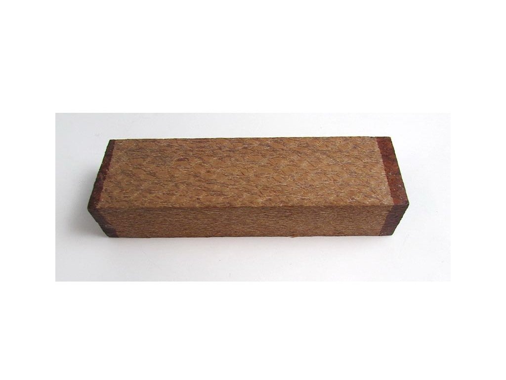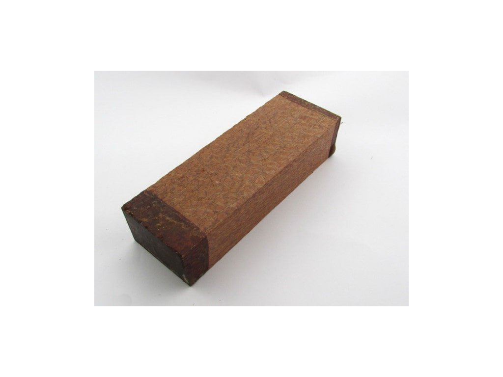 Exotisches Holz mit interessantem Muster, bestimmt für die Herstellung von Messergriffen oder zum Schnitzen. Die Farbe des Holzes reicht von mittlerem bis dunklem Rotbraun mit grauen oder hellbraunen Flecken, die einem Leopardenfleckenmuster ähneln. Holz ist ziemlich schwierig zu bearbeiten, daher muss auf die Auswahl und Schärfe der verwendeten Werkzeuge geachtet werden. Die Fasern neigen dazu, beim Hobeln herauszuziehen.