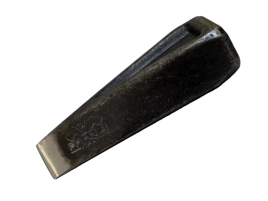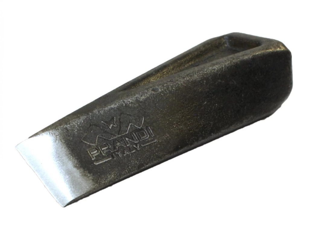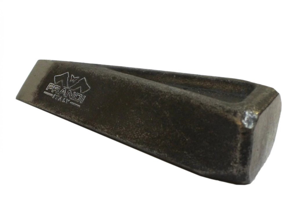 Großer Keil zum Spalten von Holz vom italienischen Hersteller Prandi. Die Klinge des Keils besteht aus Kohlenstoffstahl. Der Keil ist spiralförmig gedreht, wodurch sich große Holzscheite einfacher spalten lassen als mit einem geraden Keil. Gewicht 2000 g.