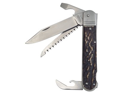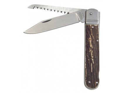 Ein hochwertiges Taschenmesser mit Verriegelung. Die Konstruktion des Großteils des Messers verwendet rostfreien Stahl AISI 440A mit einer Härte von 56HRC. Der Griff ist aus Imitation von Horn gefertigt. Es verfügt über eine Sicherheitssperre für den Öffnungsmechanismus. Dieses Messer wird sicherlich von Wanderern, Jägern, Anglern und Gärtnern gleichermaßen geschätzt.