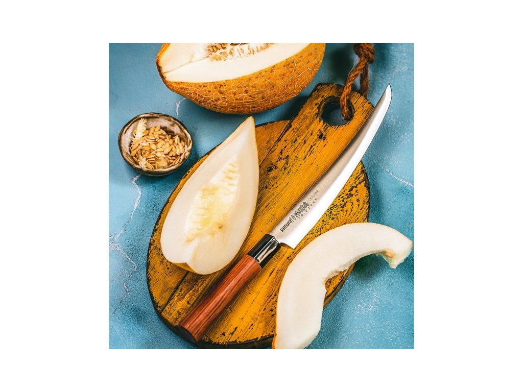 Samura ist ein moderner Hersteller japanischer Küchenmesser, der in der Vergangenheit in Zusammenarbeit mit der Marke Mcusta Messer herstellte. Seit 2010 produziert Samura Messer unter seiner eigenen Marke. Samura-Küchenmesser stellen eine Kombination aus japanischen und europäischen Küchenmessern dar. Im Vergleich zu traditionellen japanischen Messern bestehen Samura-Messer aus rostfreiem Stahl und sind weniger zerbrechlich, sodass die Gefahr eines Klingenbruchs beseitigt ist. Gleichzeitig behalten sie jedoch die für japanische Messer typischen hervorragenden Schneideigenschaften.