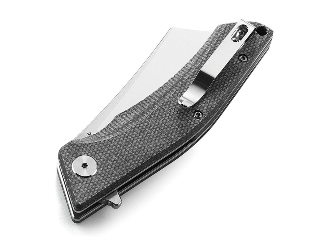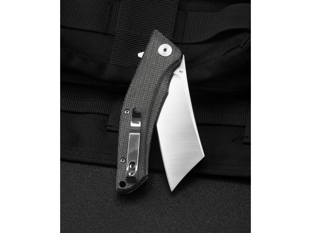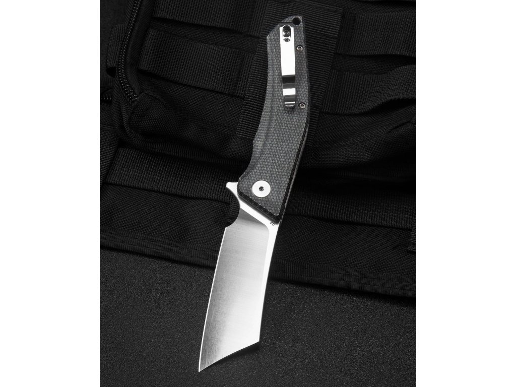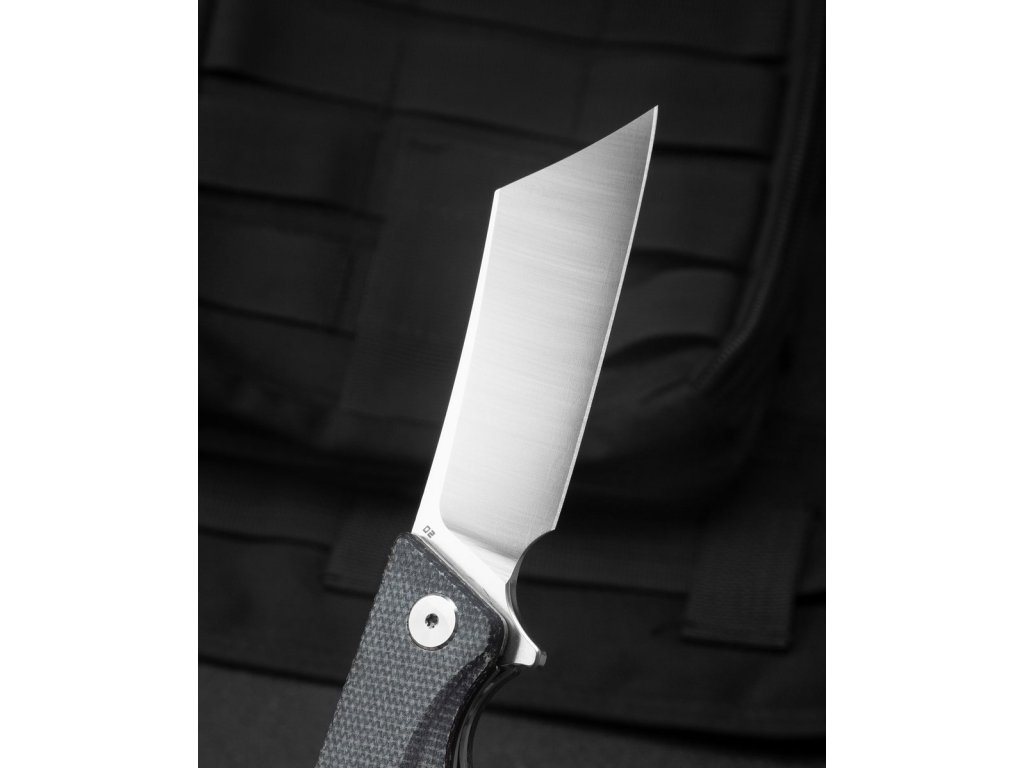 Bestech Cubis ist ein mittelgroßes Klappmesser mit unkonventioneller Klingenform (modifiziertes Tanto) für den täglichen Gebrauch. Die flach geschliffene D2-Werkzeugstahlklinge mit mattem Finish ist 8 cm lang und auf Keramiklagern gelagert, wodurch sich das Messer leicht und reibungslos öffnen lässt. Griff aus schwarzem Micarta. Das Messer ist mit einer Liner Lock-Verriegelung und einem Stahlclip zum Aufhängen ausgestattet. Einhändiges Öffnen mit einem Daumenbolzen (Thumb Stud).