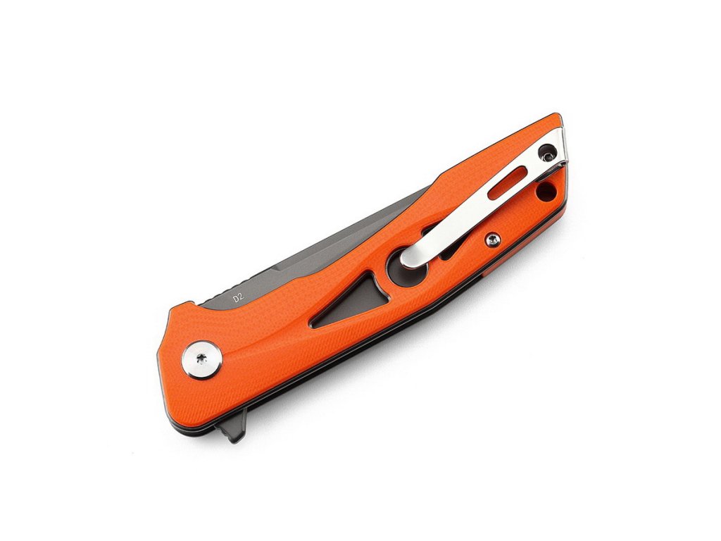 Bestech Eye of Ra ist ein alltagstaugliches Klappmesser. Die flachgeschliffene Klinge aus D2-Werkzeugstahl ist 8,6 cm lang und auf Keramiklagern gelagert, wodurch sich das Messer leicht und reibungslos öffnen lässt. Orangefarbener G10-Griff. Das Messer ist mit einer Liner Lock-Verriegelung und einem Stahlclip zum Aufhängen ausgestattet. Wird per Flipper geöffnet.