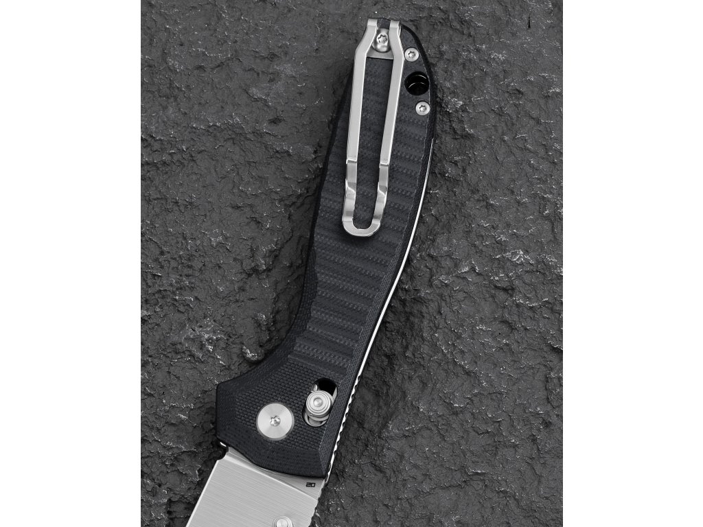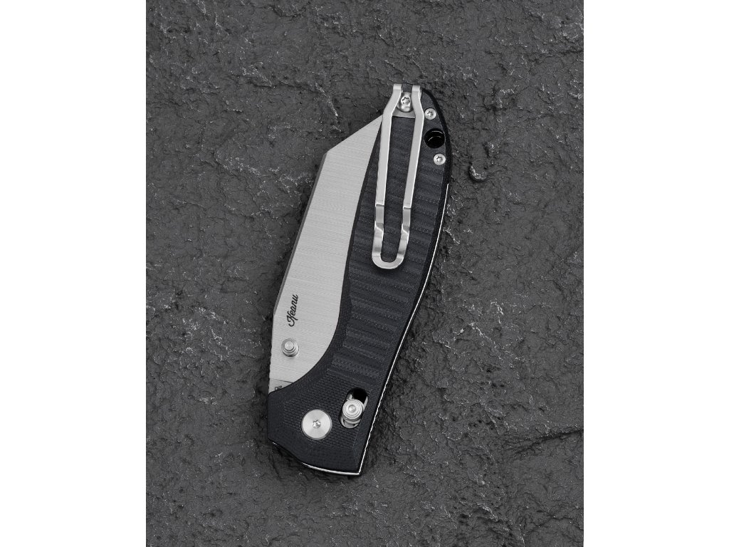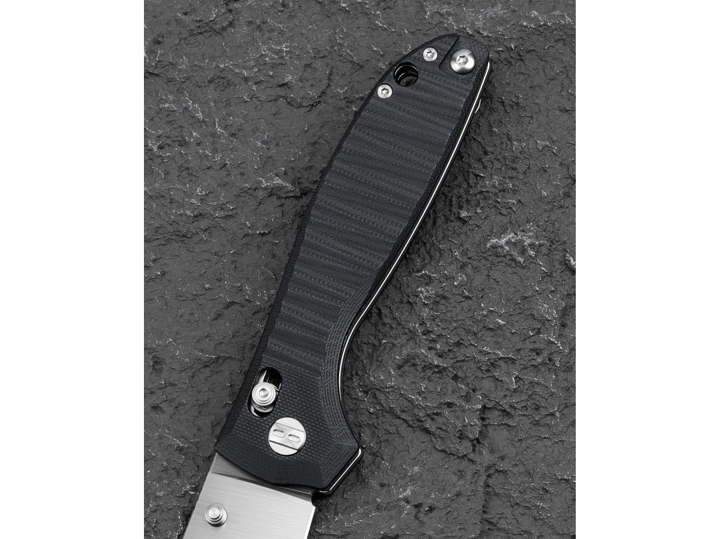 Der Griff aus schwarzem G10 mit Textur sorgt für einen sicheren Halt, die Grifflänge beträgt 12,16 cm. Einhändiges Öffnen mittels Daumenpin an der Klinge und in der offenen Position wird die Klinge durch die Bar Lock (Axis) Verriegelung gesichert. Am Griff befindet sich eine Fangriemenöse. Das Messer verfügt über einen Deep-Carry-Clip (Tip-Up), der sowohl für Rechts- als auch für Linkshänder geeignet ist. Die Gesamtlänge beträgt 21,32 cm bei einem Gewicht von 130 g. Das Design stammt von Keanu Alfaro.