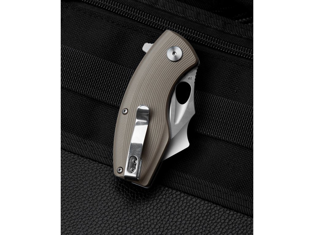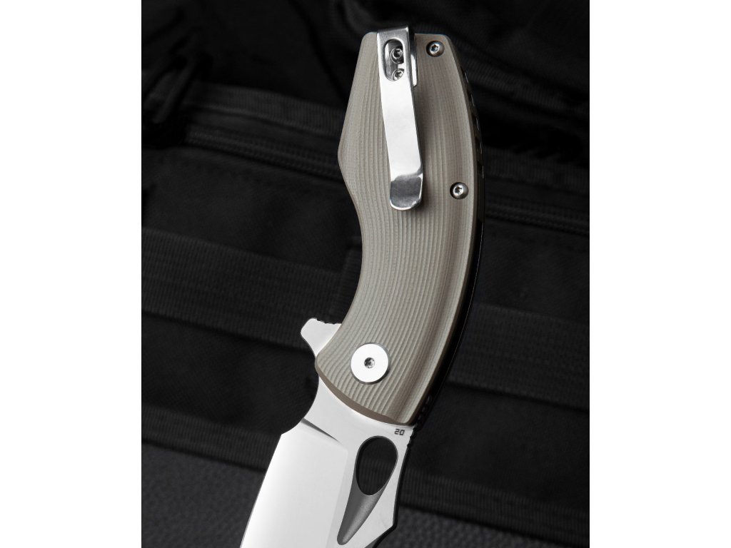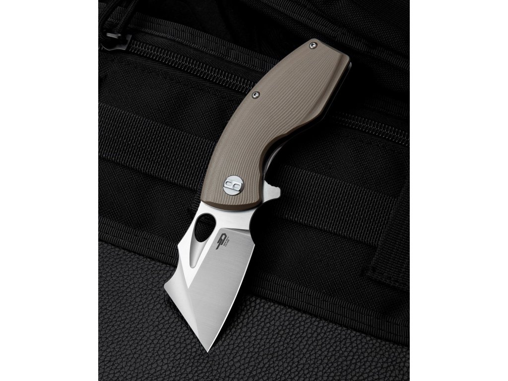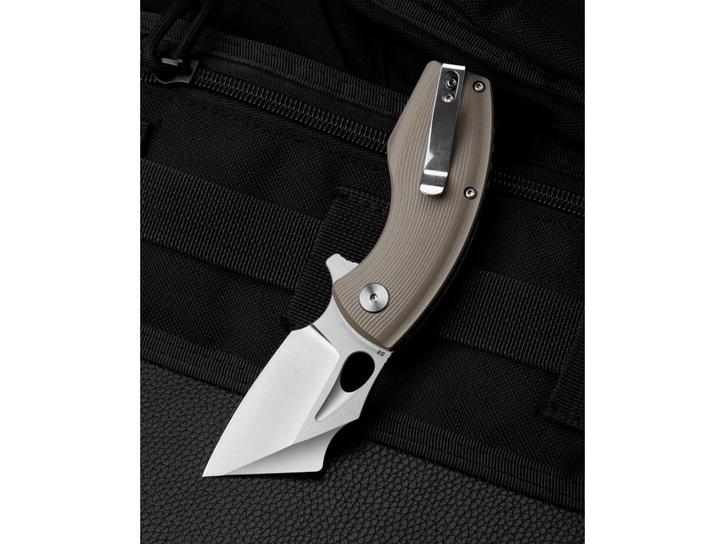 Bestech Lizard ist ein kleineres Klappmesser mit originellem Design. Die Klinge ist eine modifizierte Sheepfoot-Form aus D2-Werkzeugstahl mit Flachschliff, hat eine Länge von 6,1 cm und ist auf Keramiklagern gelagert. Strukturierter G10-Griff in beigem Design. Das Messer ist mit einer Liner Lock-Verriegelung und einem Stahlclip zum Aufhängen ausgestattet. Wird per Flipper geöffnet.