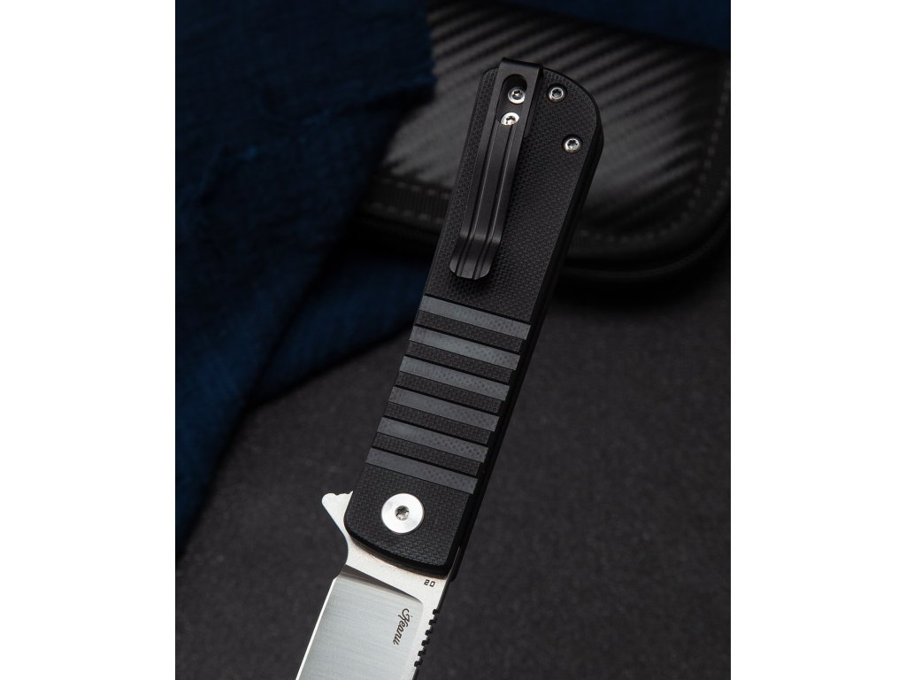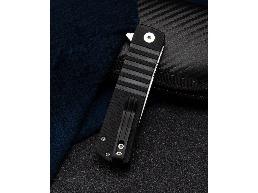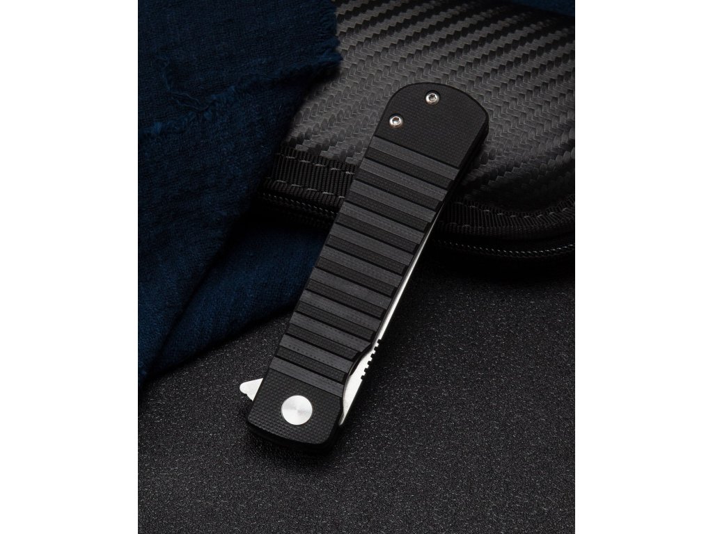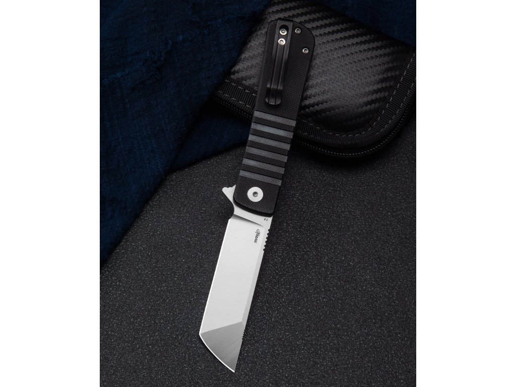 Bestech Titan BG49A-1 ist ein kleineres Klappmesser mit geringerem Gewicht und einer Klinge in Tanto-Form. Das Klappmesser ist ideal für den täglichen Gebrauch und Sie können es praktisch überall hin mitnehmen. Die flachgeschliffene Klinge aus D2-Werkzeugstahl mit Satin-Finish ist 7,5 cm lang und auf Keramiklagern gelagert, wodurch sich das Messer leicht und leichtgängig öffnen lässt. Der schwarze G10-Griff verleiht dem Messer ein elegantes Aussehen. Das Messer ist mit einer Liner Lock-Verriegelung und einem Stahlclip zum Aufhängen ausgestattet. Einhändiges Öffnen mit einem Flipper.