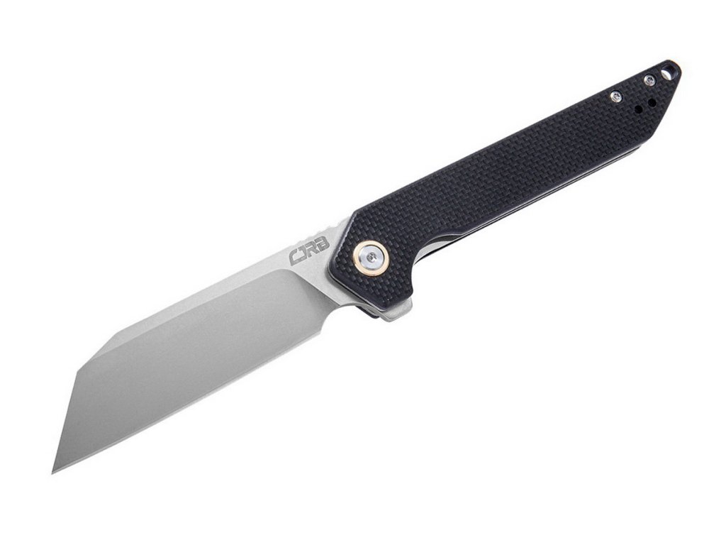 Ein Klappmesser mit einer Wharncliffe-förmigen Klinge. Das CJRB Rampart verfügt über eine Klinge aus D2 Werkzeugstahl mit Stonewash-Finish und Flachschliff. Die Klinge wird mit einem Liner Lock gesichert. Strukturierter schwarzer G10-Griff. Aufhängeclip für Messer aus Edelstahl, beidseitig umkehrbar (rechts/links). Das einhändige Öffnen wird durch den Flipper garantiert. Das Öffnen des Messers ist sehr einfach und reibungslos, die Klinge ist auf Keramiklagern gelagert.