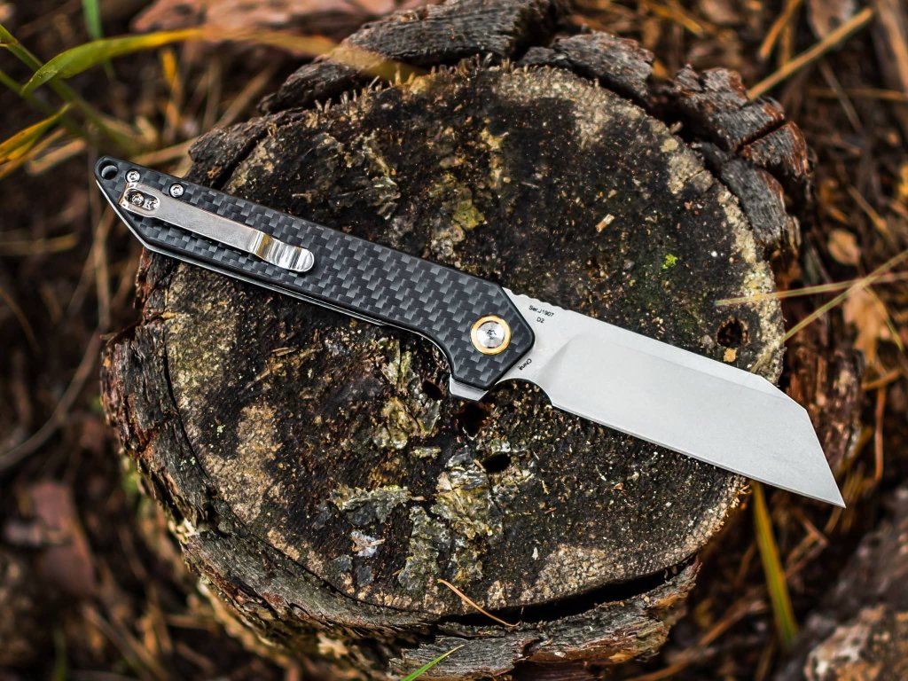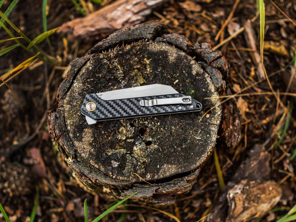 Ein Klappmesser mit einer Wharncliffe-förmigen Klinge. Das CJRB Rampart verfügt über eine Klinge aus D2 Werkzeugstahl mit Stonewash-Finish und Flachschliff. Die Klinge wird mit einem Liner Lock gesichert. Griff mit Kohlefasereinsätzen. Aufhängeclip für Messer aus Edelstahl, beidseitig umkehrbar (rechts/links). Das einhändige Öffnen wird durch den Flipper garantiert. Das Öffnen des Messers ist sehr einfach und reibungslos, die Klinge ist auf Keramiklagern gelagert.