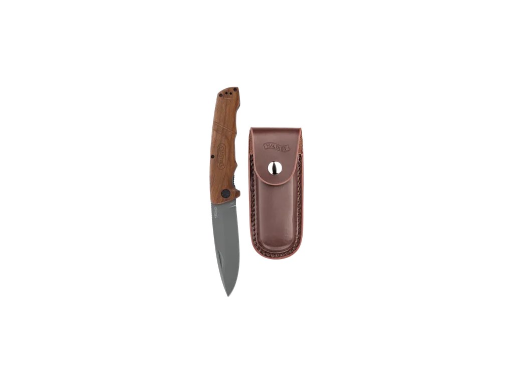 Großes Klappmesser mit Holzgriff und Liner Lock. Das Walther Blue Wood Knife 7 ist ein tolles Outdoor- und Jagd-Klappmesser. Die Klinge aus rostfreiem 440C-Stahl mit Titan-Oberflächenbehandlung ist wartungsfrei und hat eine gute Schnitthaltigkeit. Der Griff des Messers aus Walnussholz ist ergonomisch geformt und liegt angenehm in der Hand. Das Messer ist mit einem blauen Aufhängeclip ausgestattet, der umkehrbar ist (rechts/links). Gleichzeitig wird das Messer mit einer Lederhülle geliefert, das am Gürtel gehängt werden kann.