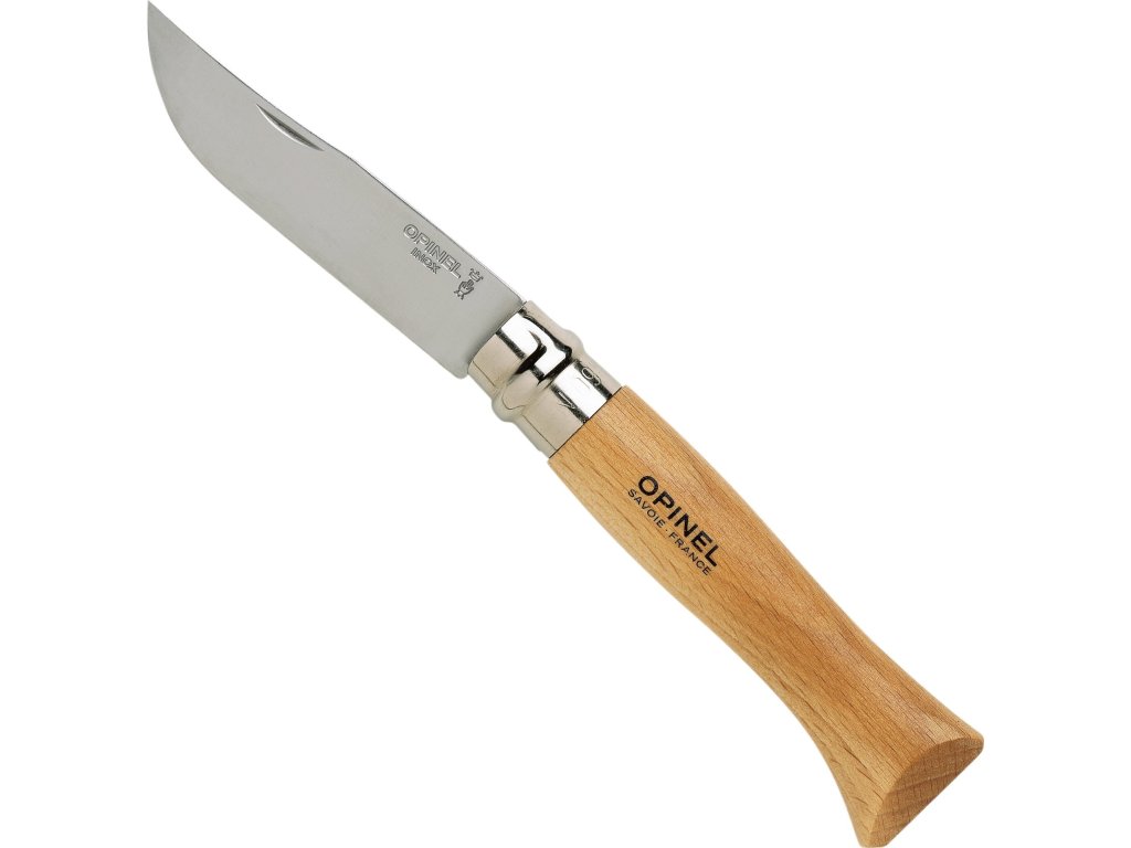Ein praktisches Klappmesser der französischen Marke Opinel mit einer 9 cm langen Klinge aus rostfreiem Stahl und einem Griff aus Buchenholz. Das Messer verfügt über eine drehbare Viroblock-Verriegelung. (Das Messer muss nach Gebrauch gründlich gereinigt, getrocknet und mit Öl eingerieben werden).