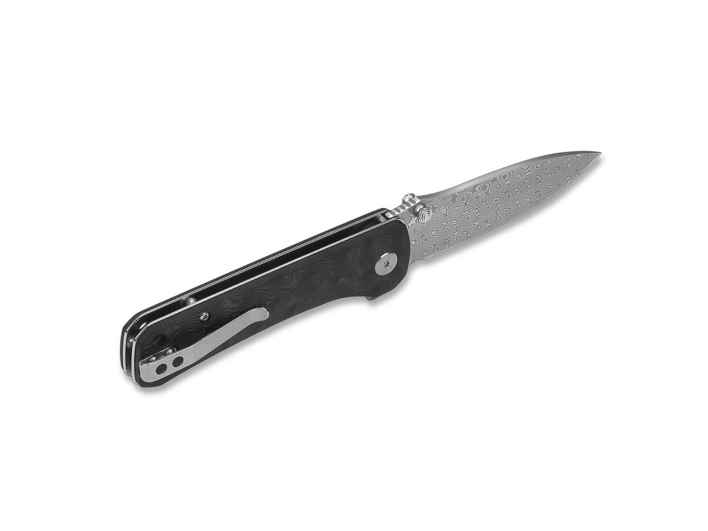 Das elegante Klappmesser QSP Hawk ist ein zuverlässiges Taschenmesser für den täglichen Gebrauch aus hochwertigen Materialien. Die 3 mm starke Klinge besteht aus Damaststahl, hat eine Drop-Point-Form und einen Flachschliff. Griff aus Kohlefaser mit einem ähnlichen Muster wie die Klinge. Das Messer ist mit einem Liner Lock und einem Stahlclip zum Aufhängen ausgestattet. Öffnen mit einem Stift an der Klinge oder mit Flipper.