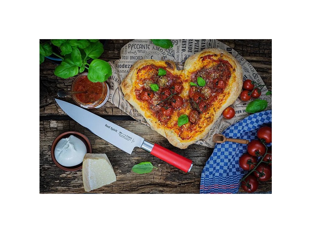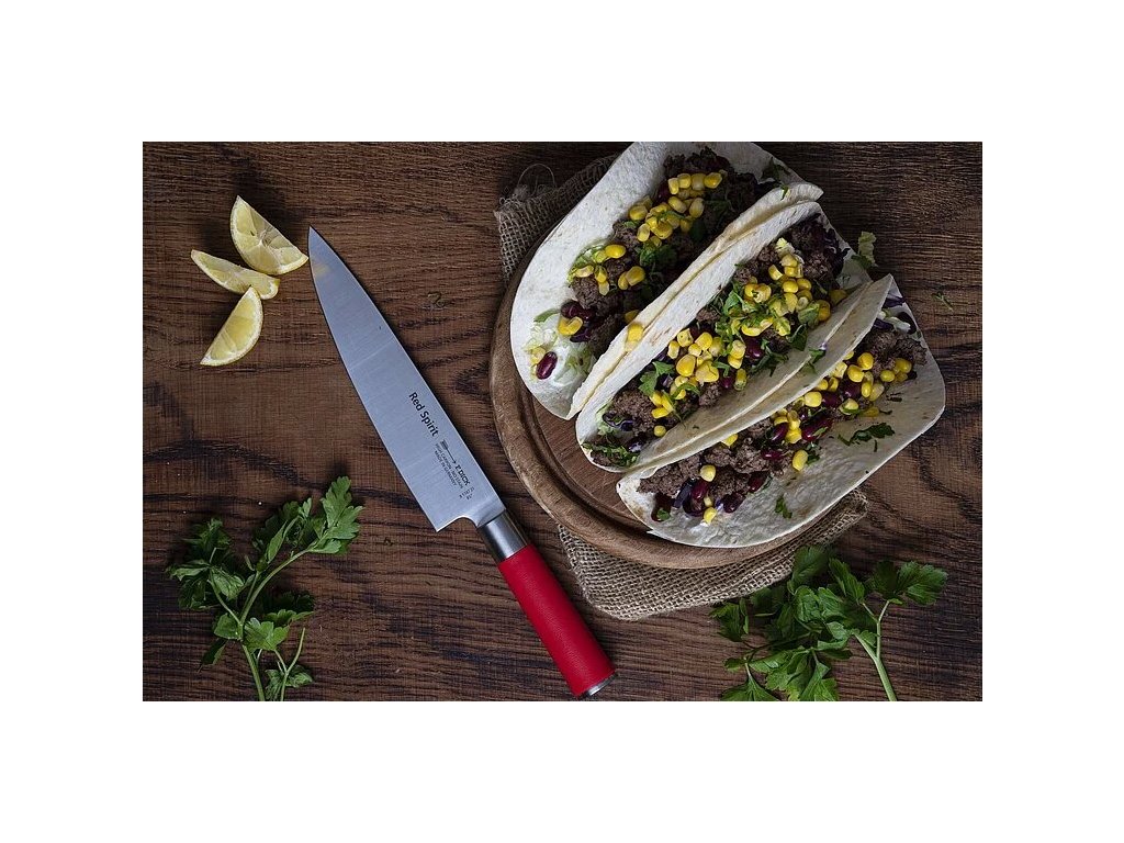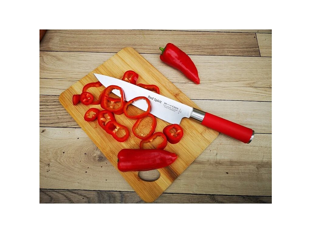 Das Premium-Küchenmesser aus der Dick Red Spirit Serie vereint asiatisches Handwerk und deutsche Qualität. Dieses auf den ersten Blick attraktive Küchenmesser wird Ihre Küche erhellen und wird aufgrund seiner roten Farbe zu einem unübersehbaren Element in Ihrer Küche. Bei der Red Spirit Serie ließ sich der Hersteller von der asiatischen Sonnengöttin inspirieren, deren Symbol die Farbe Rot ist. Dieses Messer wird vollständig in Deutschland hergestellt.