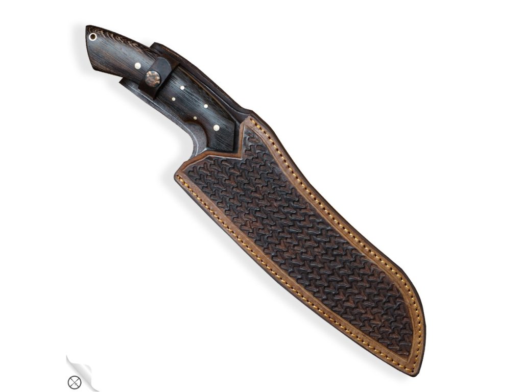 Die Klinge des Werkzeugs ist mit einer schwarzen Pulverbeschichtung versehen. Pulverstahlbeschichtung. Für den Griff des Messers wurde exotisches Wengeholz verwendet, das sich durch seine ergonomische Formbarkeit auszeichnet, dank derer Sie das Messer besser kontrollieren können. Jedes der Messer stellt ein unnachahmliches Stück dar, daher kann das gelieferte Produkt geringfügig vom Abbildungsfoto abweichen. Selbstverständlich wird bei jedem Stück gleichermaßen auf höchste Qualität und detaillierte Verarbeitung geachtet.