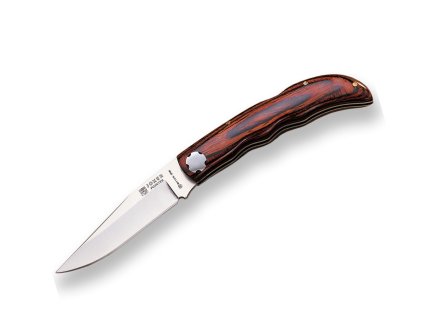 Joker Cocker Jagdmesser aus X50CrMoV15-Stahl und Griff aus Pakkaholz. Die Länge der Klinge beträgt 9 cm.