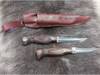 Set von zwei finnischen Messern in einer Lederhülle. Es besteht aus zwei skandinavischen Messern - einem Universalmesser für Natur und Jagd mit einer Klingenlänge von 9,5 cm und...