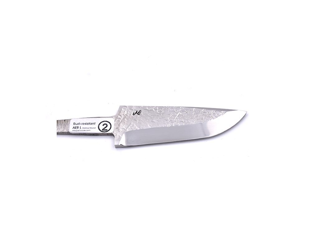 Klinge zur Herstellung eines 3 mm dicken Edelstahl-AEB-L-Messers. Die Klinge hat eine Spike-Konstruktion. . Die Gesamtlänge beträgt 17,5 cm, die Länge der Klinge selbst beträgt 7,5 cm. Die Breite der Klinge beträgt 2,6 cm. Die Klinge hat einen skandinavischen Schliff und ist geschärft – sofort einsatzbereit