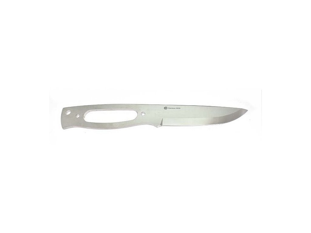 Messerklinge zur Herstellung eines Messers mit einer Stärke von 3,6 mm aus rostfreiem Stahl N690. Die Klinge hat ein Full-Tang-Design. Die Gesamtlänge beträgt 21,5 cm, die Länge der Klinge selbst beträgt 10 cm. Die Breite der Klinge beträgt 2,5 cm, die Durchmesser der Löcher im Griff betragen 2 x 4,7 mm und 1 x 6,4 mm. Die Klinge hat einen skandinavischen Schnitt.