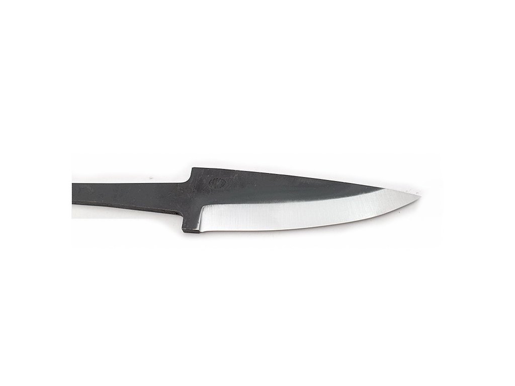 Messerklinge zur Herstellung eines 3,2 mm dicken Messers aus Kohlenstoffstahl 80CrV2. Die Klingenbasis ermöglicht zusammen mit der Drop-Point-Form vielfältige Möglichkeiten bei der Griffgestaltung. Die Gesamtlänge beträgt 21 cm, die Länge der Klinge selbst 8,5 cm.