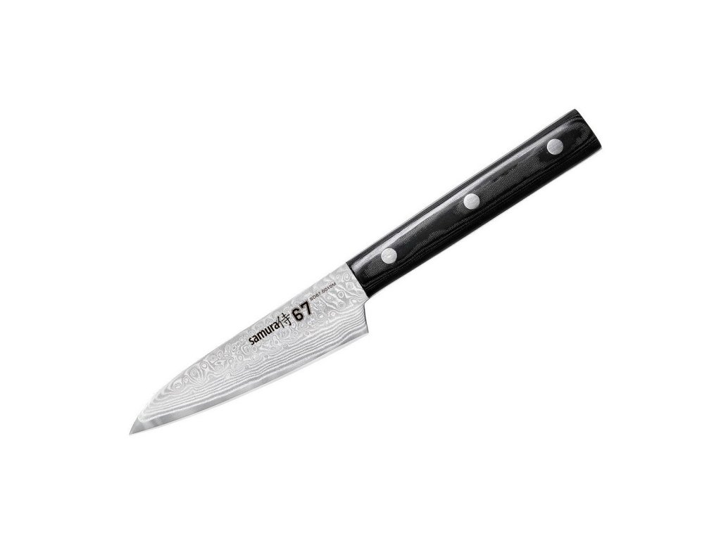 Die Samura Damascus 67 Küchenmesser aus der Serie sind wahre Schätze unter den Küchenmessern. Sie bieten eine Kombination aus einer dünnen und extrem scharfen Klinge aus japanischem Damaststahl (67 Schichten Stahl, Härte bis zu 61 HRC) und einem exklusiven Griff aus Micarta. Sie sind leicht, von hoher Qualität und haben ein ansprechendes minimalistisches Design. Sie werden in einer schönen papier-plastikverpackung geliefert und eignen sich daher auch hervorragend als Geschenk.