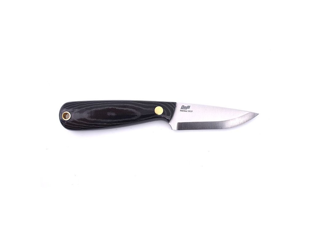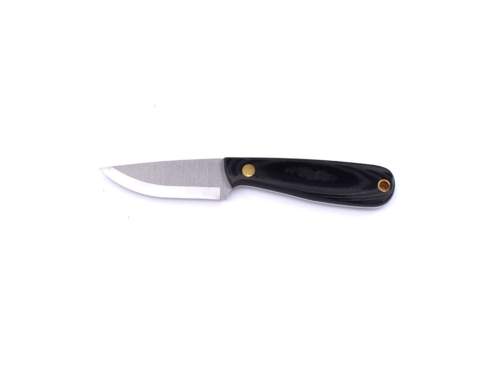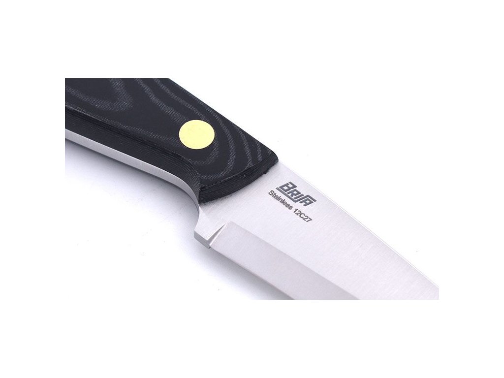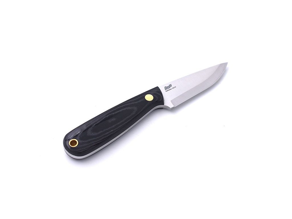 Brisa Necker ist ein Messer mit feststehender Klinge, das um den Hals getragen werden kann. Die Klinge ist 7 cm lang und besteht aus rostfreiem Sandvik 12C27-Stahl mit skandinavischem Schliff. Griff aus schwarzem Micarta, Scheide aus Kydex.