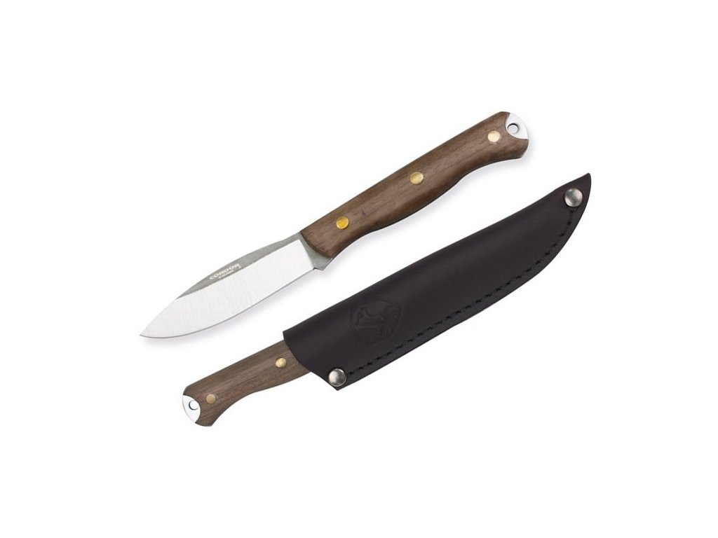 Der Griff ist aus Walnussholz gefertigt. Das Condor Scotia Knife wird in einer einfachen Kunstlederscheide mit einer Gürtelschlaufe geliefert, die auf Gürtel von bis zu 6 cm Breite passt. In dem Leder sind Verzierungen angebracht.