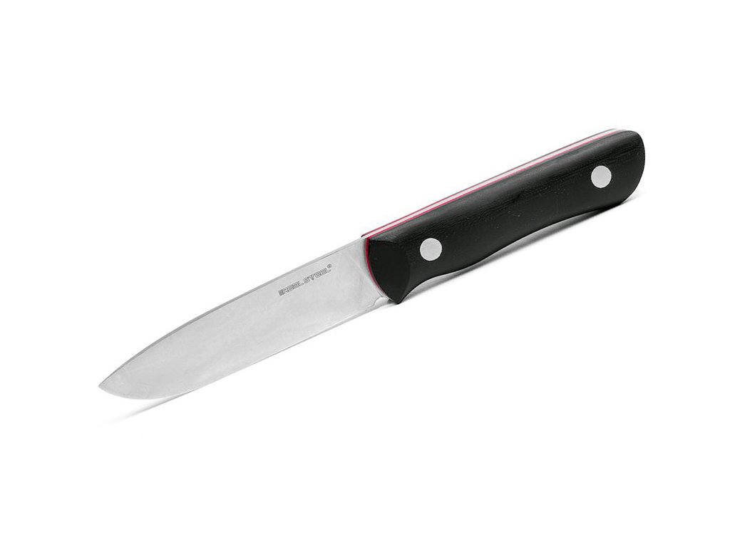 Real Steel Bushcraft III ist ein mittelgroßes Universalmesser mit feststehender Klinge in Full Tang Konstruktion. Dadurch lässt es sich gut im Arbeitsalltag und in der Natur einsetzen. Die Klinge ist 10,5 cm lang, gefertigt aus Kohlenstoffstahl D2 mit konvexem Schliff. Griff aus G10 in Schwarz. Lederscheide mit Aufhängemöglichkeit.