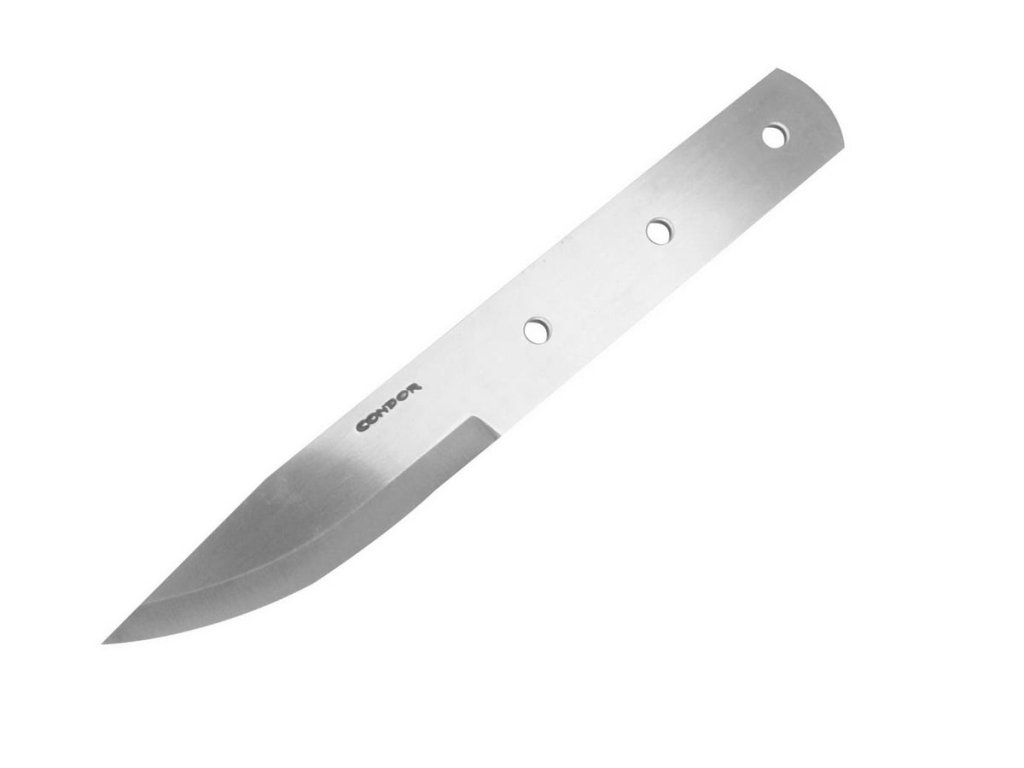 Separate Klinge vom Condor Woodlaw-Messer. Die 3 mm dicke Klinge hat eine Full-Tang-Konstruktion und besteht aus 1075-Kohlenstoffstahl. Die Klinge ist gehärtet und geschärft – sofort einsatzbereit. Die Gesamtlänge beträgt 21,6 cm, die Länge der Klinge selbst beträgt 10,2 cm, das Gewicht beträgt 91 g.