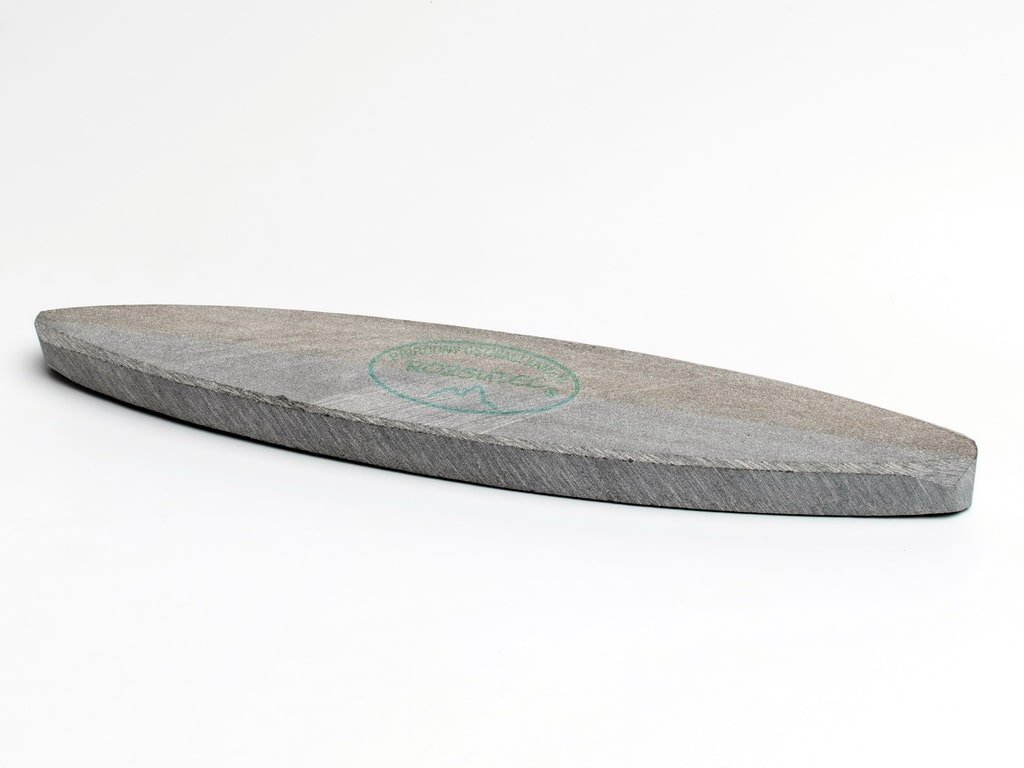 Der natürliche slowakische Schleifstein Rozsutec stammt aus Mala Fatra. Es handelt sich um einen harten Sedimentsandstein, der aus sehr feinen und gleichmäßigen Sandkörnern besteht. Es eignet sich hervorragend zum abschließenden Feinschleifen und Polieren der Klinge. Dank der sehr feinen Struktur des Sandsteins erreicht die Körnung (Körnung) etwa 6000-8000 und kann die Kante auf Spiegelglanz glätten. Auf Rozsutc können Sie Messer, Rasiermesser, Tischler- und Schnitzmeißel und andere Werkzeuge perfekt schärfen. Die Steine haben eine sehr hohe Verschleißfestigkeit, sind hart und schrumpfen beim Schleifen nahezu nicht. Rozsutec-Stein wird zum Schleifen mit Wasser verwendet.