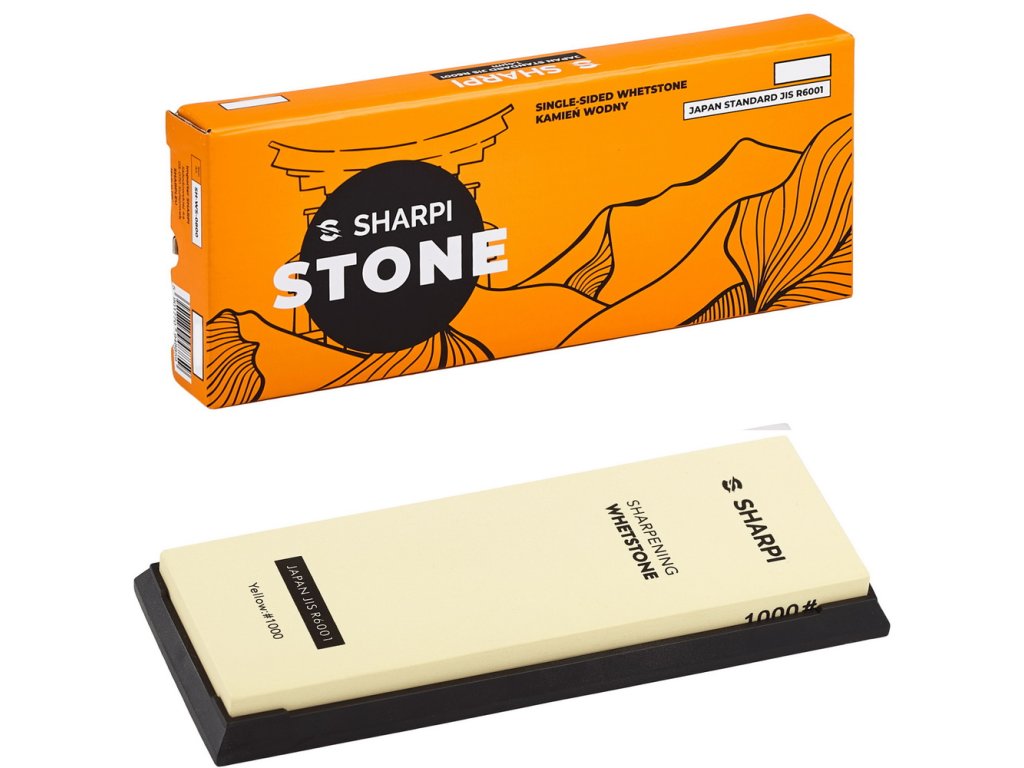 Schleifstein mit einer feinen 1000er Körnung. Hergestellt nach dem japanischen JIS R6001-Standard, bietet er eine hohe Langlebigkeit und Effizienz beim Schärfen. Die 1000er Körnung wird für das Grundschärfen oder zur Vorbereitung von Werkzeugen für weitere Schleifphasen empfohlen. Sie können den Stein für Küchenmesser, Scheren, Taschenmesser, Gartenwerkzeuge, Äxte, Macheten, Meißel und viele andere Stahlwerkzeuge verwenden. Der Stein besteht aus Korund (Al2O3), was eine hohe Qualität und einen geringen Verschleiß gewährleistet. Im Lieferumfang ist zudem ein Kunststoffsockel zur stabilen Halterung des Steins enthalten.