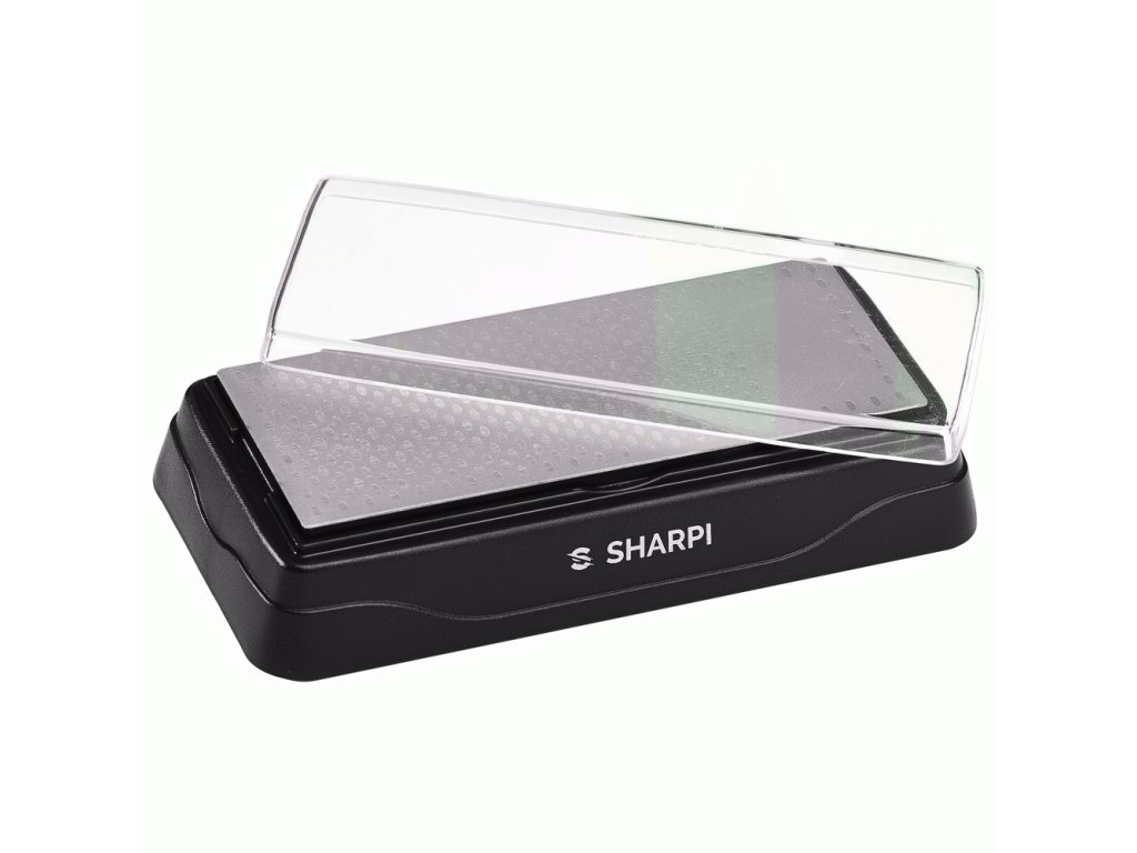 Sharpi Schleifsteine bieten eine hohe Langlebigkeit und Effizienz beim Schärfen. Der Stein ist aus Diamant gefertigt, wodurch er sich durch hohe Qualität und geringen Verschleiß auszeichnet. Im Lieferumfang ist zudem ein Kunststoff-Sockel zur Halterung enthalten.