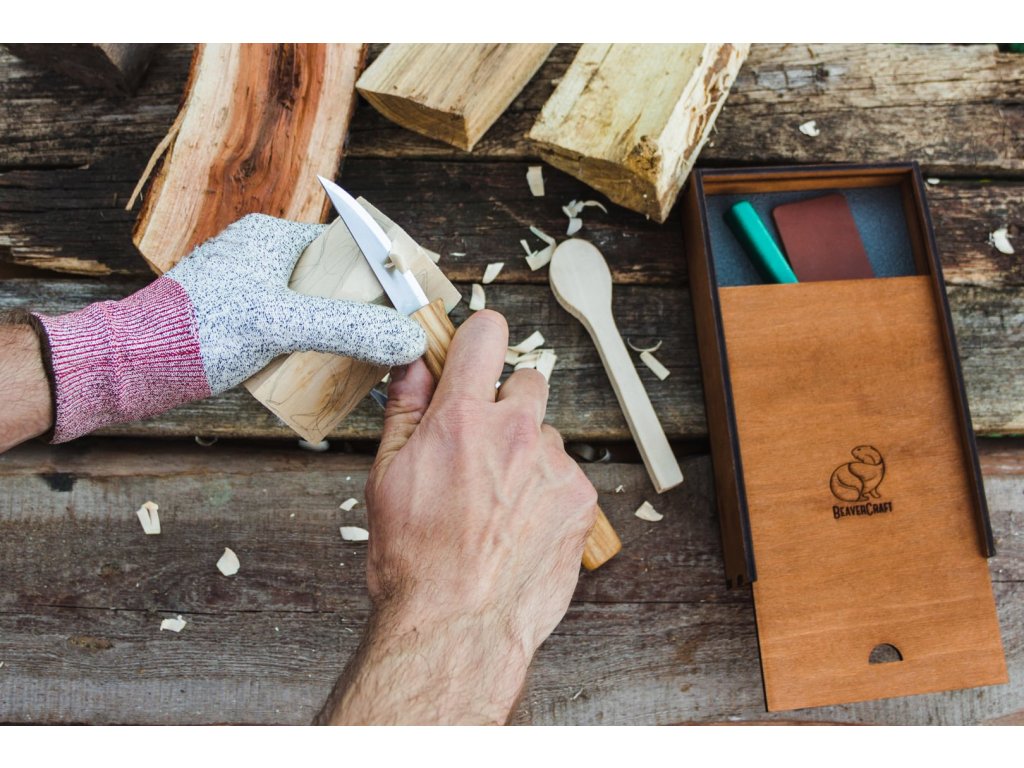 BeaverCraft ist ein spezialierter Hersteller von Schnitzwerkzeugen. Spezielle Schnitzmesser, Löffelschnitzmesser und Meißel in verschiedenen Formen und Größen, geeignet für verschiedenste Schnitztechniken. Für die Herstellung von Schnitzwerkzeugen verwendet BeaverCraft einen speziellen legierten Kohlenstoffstahl mit Mangan und einer Härte von 57-59 HRC. Es handelt sich um einen Federstahl, er lässt sich gut schleifen und man kann damit problemlos eine hohe Schärfe erzielen. Einer der größten Vorteile dieses Stahls ist seine Haltbarkeit – er hält starkem Verdrehen und Biegen stand, ohne sich zu verformen. Alle Werkzeuge von BeaverCraft werden am Ende der Produktion einer Qualitätskontrolle unterzogen. Der Hersteller prüft sorgfältig Form, Schärfe, Härte, Geometrie und Aussehen der Werkzeuge.