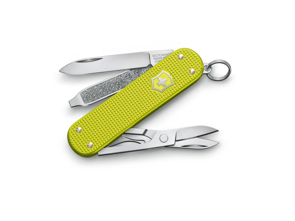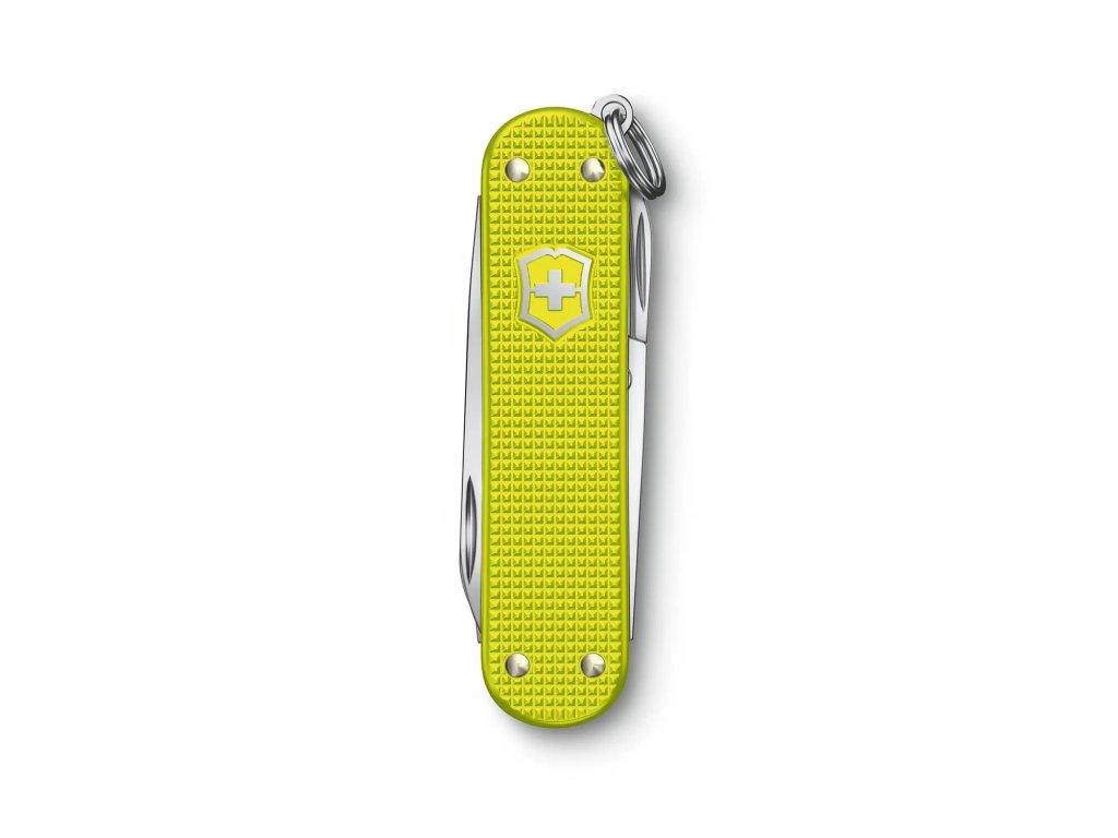 Das Victorinox Classic Messer ist ein kleines handliches Messer, das Sie perfekt an Ihren Schlüssel hängen und immer dabei haben können, wann immer Sie es brauchen. Die limitierte Edition 2023 bringt dieses Messer in Limettengrün. Der Metallgriff mit schwarz eloxiertem Aluminium verleiht dem Messer ein interessantes Aussehen. Die Länge des Messers im geschlossenen Zustand beträgt 5,8 cm und das Gewicht beträgt nur 16,5 g. Classic SD wird außerdem mit einem Boxöffner geliefert. Verpackt in einer eleganten Geschenkbox. Das Messer enthält 5 Funktionen: