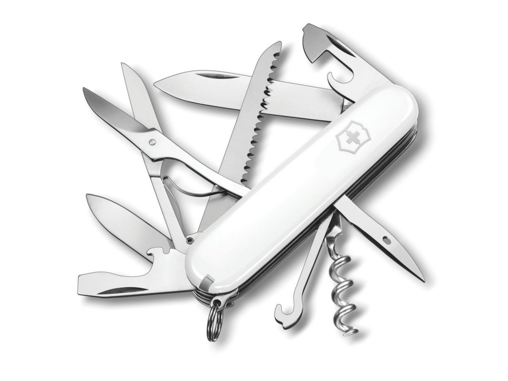Das Victorinox Huntsman-Messer ist ein weiteres Messer aus der Swiss Army Knife-Reihe. Die Größe des Messers beträgt 91 mm und das Gewicht 97 g. Schwarze Griffe in Weiß. Enthält 15 Funktionen: