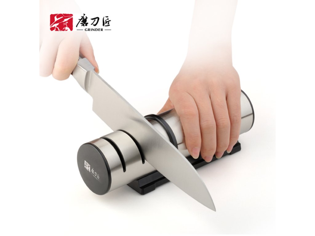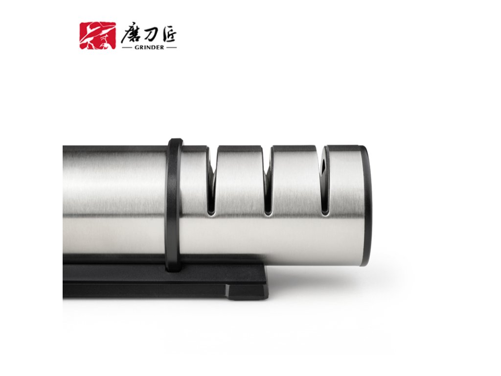 Es genügt, das Messer mehrmals durch die Führungsschlitze zu ziehen, und es ist wieder scharf. Wenn das Messer sehr stumpf ist, beginnen Sie mit dem gröbsten Diamanten und fahren Sie mit dem mittleren und feinen fort. Ist das Messer nur leicht stumpf, reichen ein paar Züge durch die feine Keramik zum Nachschärfen aus.