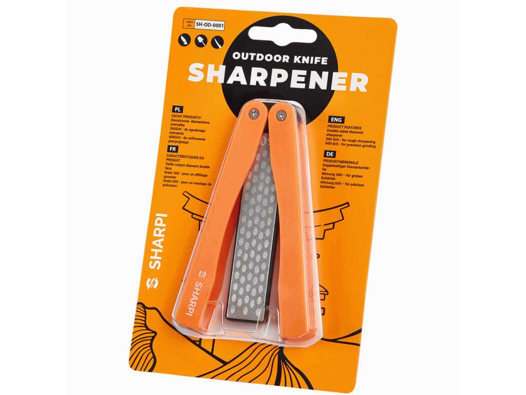 Der klappbare Diamant-Messerschärfer von Sharpi schärft Ihre Messer auf professionellem Niveau. Er bietet ein breites Einsatzspektrum, von Küchen- und Fischmessern über Scheren bis hin zu Garten- und Outdoor-Werkzeugen. Dank seiner kompakten Abmessungen und des schlichten Designs ist er ideal für den Einsatz zu Hause und unterwegs geeignet. Der Schärfer bietet eine grobe und eine mittlere Körnung – 360/600. Mit der 360er Körnung schärfen Sie selbst sehr stumpfe Messer, während die 600er Körnung für das anschließende Nachschärfen und den Feinschliff vorgesehen ist.