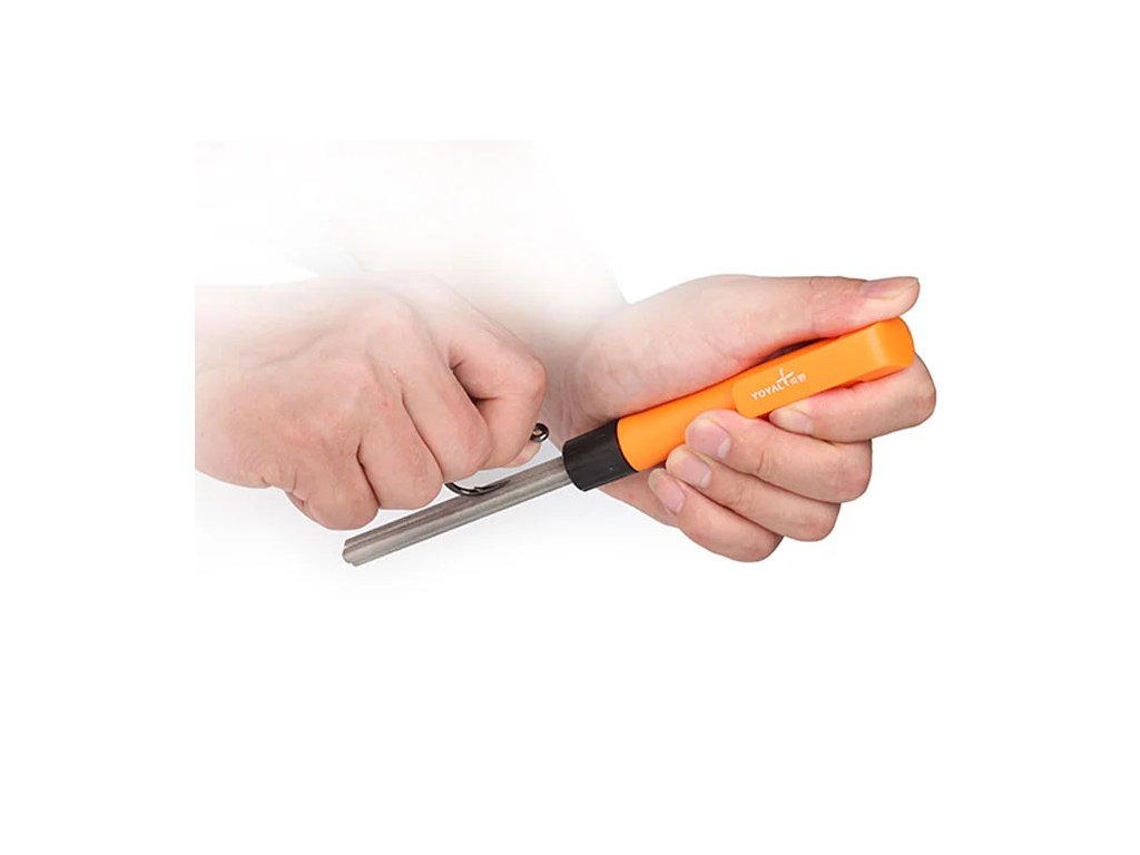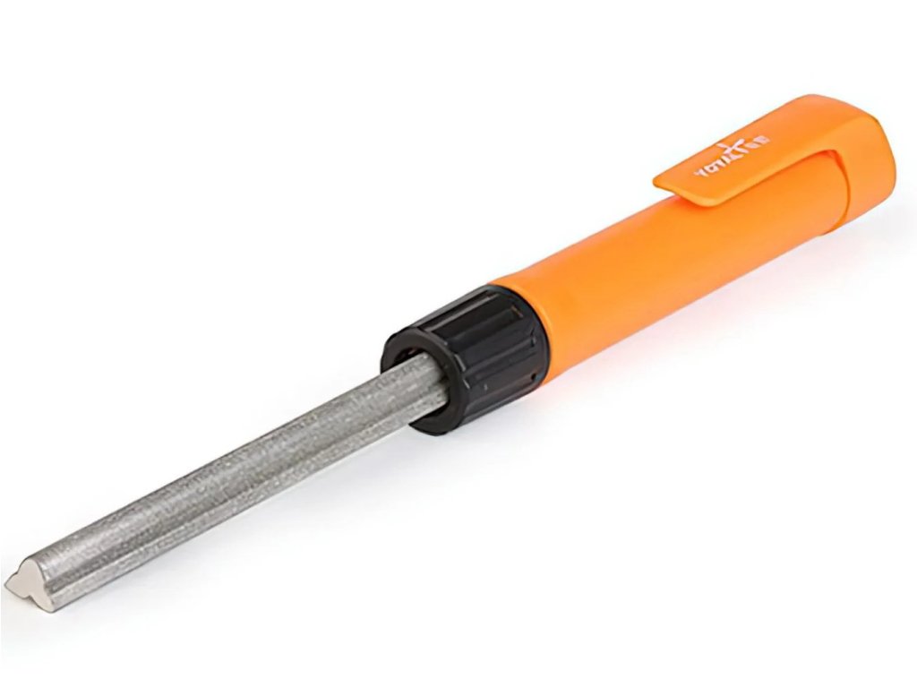 Diamant-Taschenschärfer für die schnelle Reparatur und das Nachschärfen von Messern unter Feldbedingungen. Dank seiner dreieckigen Form eignet sich der Schärfer auch für Klingen mit Wellenschliff und meistert problemlos das Schärfen von Angelhaken.