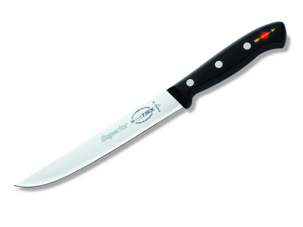 Küchenmesser der Superior-Serie sind sowohl für Profis als auch für den Heimgebrauch konzipiert und konstruiert . Dies ist ein klassisches Design mit einem leichten Griff mit drei Nieten. Dick Superior kombiniert die Verbindung einer modernen Klinge mit einem traditionellen Griff und das Ergebnis ist ein perfekt ausgewogenes und erschwingliches Messer für jedermann.