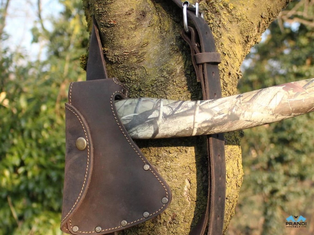 Gürtelholster aus Leder für Prandi-Yankee- und Camping-Äxte. Passend für Modelle 3.043.06, 3T.043.06 und für alle Modelle ab 3.051.05. Verschluss mit Bolzen. Aus echtem Leder.